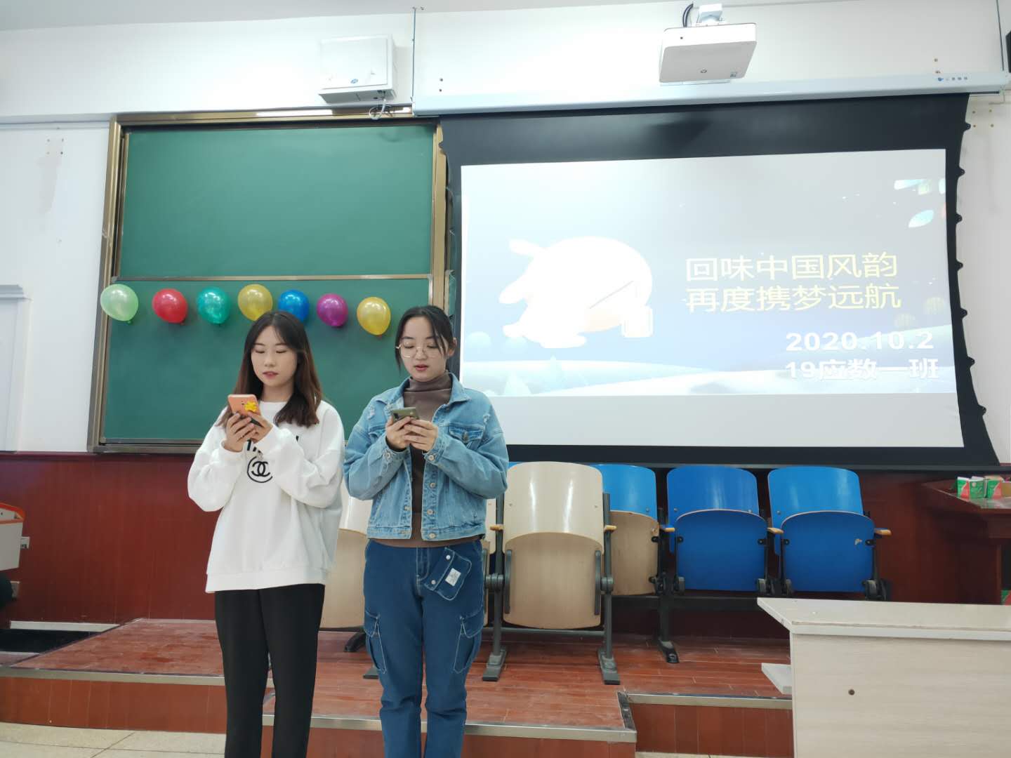 今年,国庆与中秋相遇,“家” 与“国”在时间上的相连、文化上的相牵,更让人有家国之思,感家国之情。10月2日,数学科学学院19级应数1班组织开展了“回味中国风韵,再度携梦远航”主题班会。