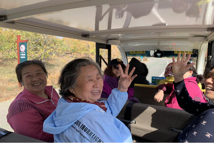 坐在返程的观光车上,老先生们讨论起了比赛过程中的趣事。
