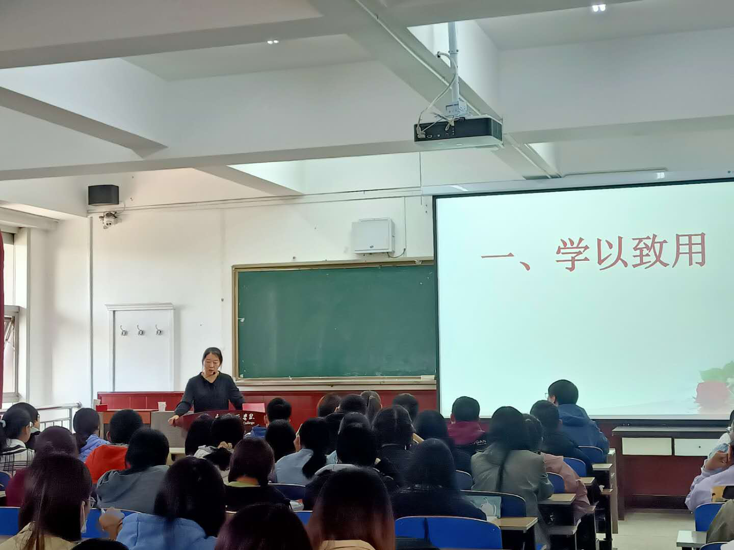 张雪梅老师围绕学以致用、学在当下、学无止境三个方面进行了讲演并向思想政治教育专业的同学们提出三点期望:第一,提升专业技能;第二,注重师范生技能的培养;第三,规划未来。