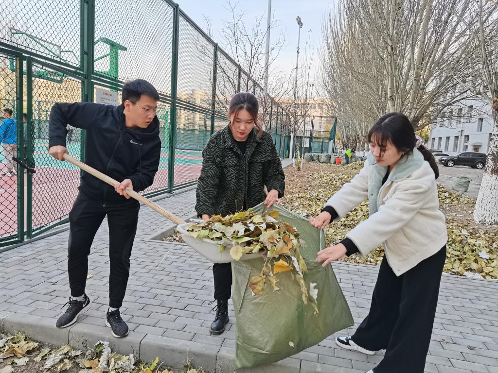 活动中,物理学子发扬不怕苦、不怕脏、不怕累的精神,拿着扫帚、簸箕等清扫工具,对校园里绿化带、道路上的落叶、垃圾等进行了全面的清理,寒冷的天气丝毫没有减弱志愿者的积极性,大家相互帮助、默契配合,展现出青春活力的一面,扫落叶活动在一片欢声笑语中有条不紊地进行,大家都为学校的环境美化贡献一份自己的力量。经过同学们一下午辛勤劳动,场地焕然一新,眼前的劳动成果让同学们感到欣慰。
