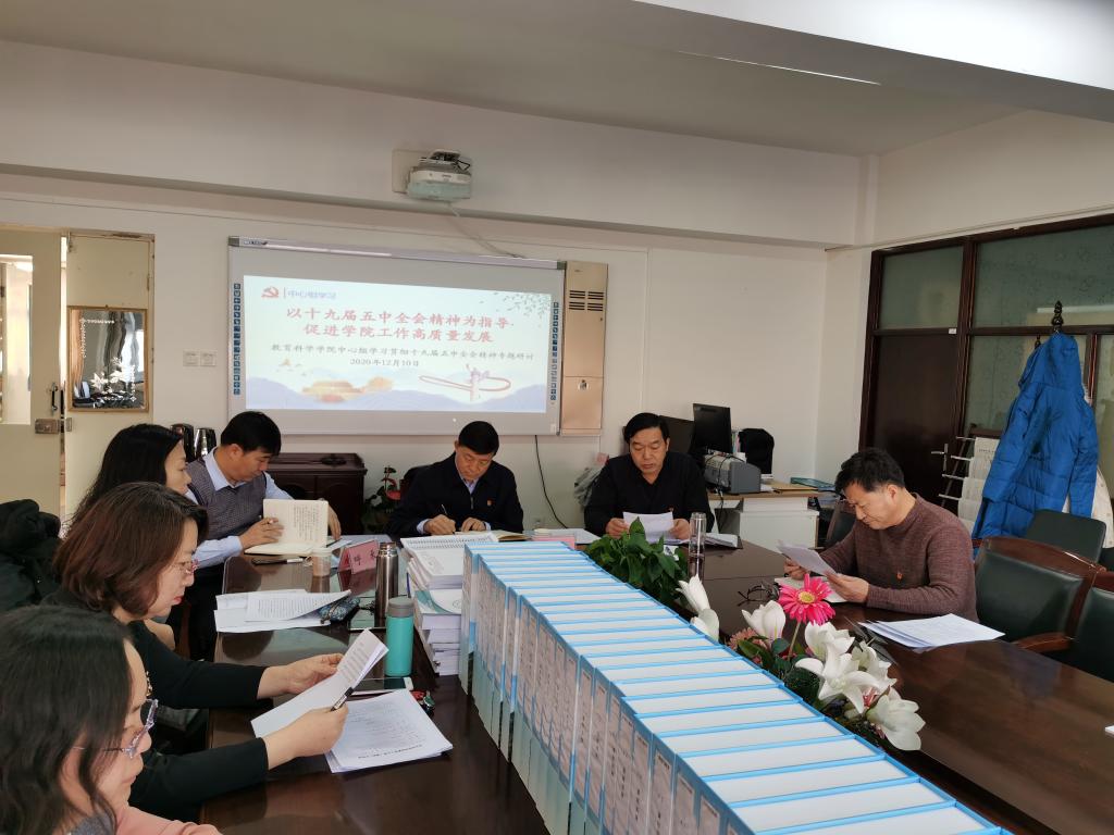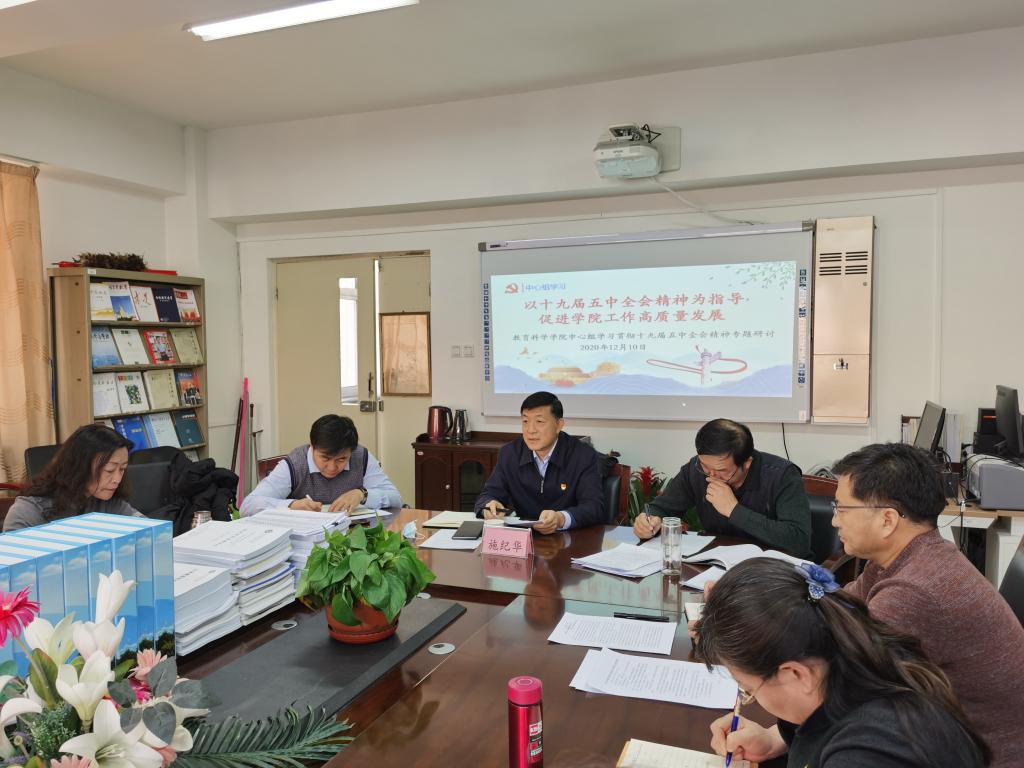12月10日上午,教育科学学院中心组成员“学习贯彻十九届五中全会精神,推动学院高质量发展”专题研讨交流会在博学楼731举行。会议由党总支书记张岫峰主持,学院领导班子成员及其他环节干部等12名中心组成员参加了研讨会,校党委副书记施纪华,校团委书记、学生工作部部长呼禾到会旁听。