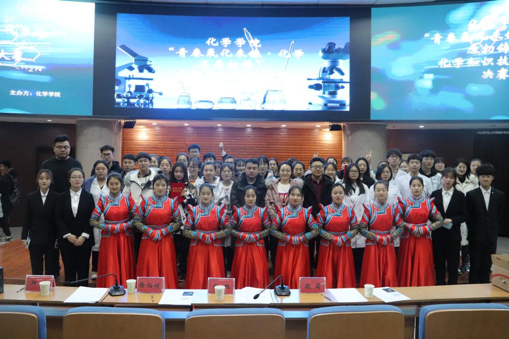 为营造校园文化氛围,提升学生专业素养,强化优良学风建设的实践育人作用,化学学院于12月8日晚7点10分在第一学术报告厅举办了第十七届校园社团文化节系列活动之“青春氧化未铼,化学还原初锌”知识技能大赛决赛。化学学院学工办辅导员张旭老师、魏婷老师、徐向明老师及实验员韩伟老师担任本次大赛的评委,化学学院全体学生及其他学院的化学爱好者均参与了比赛。