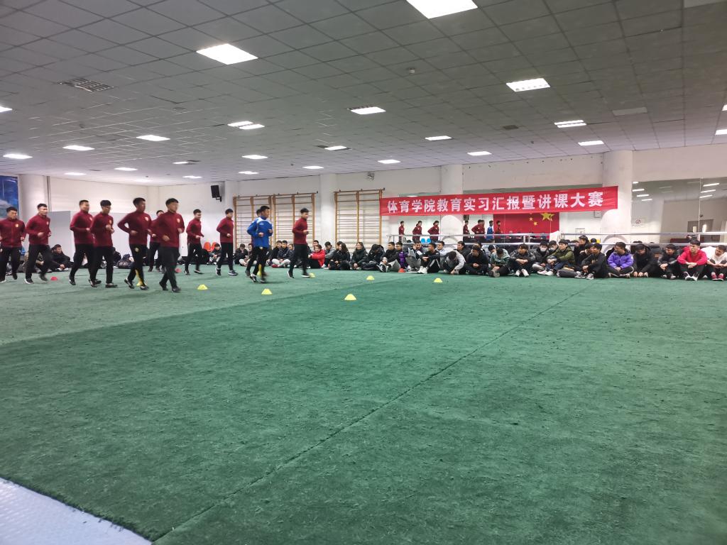 为加强体育学院教育专业实习生教育教学水平,12月17日下午,体育学院在体育馆举行了2017级教育实习汇报及讲课大赛活动。2017级全体体教学生进行了观摩,体育学院院长、书记及副书记全程观看比赛。