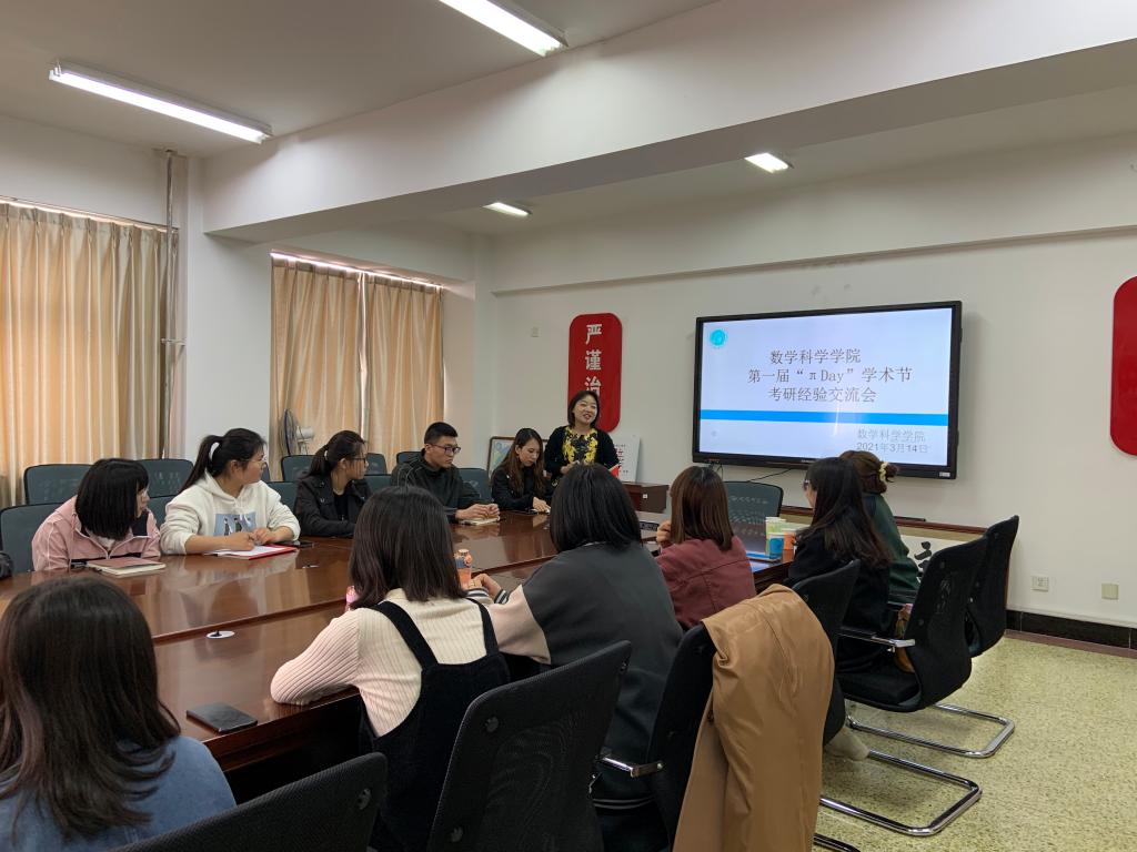 数学科学学院希望以庆祝国际数学日“π Day”的机会,通过一系列学术讲座和学术活动,为全校喜欢数学、热爱数学的师生创造学习、交流、探讨、互动的机会,营造浓郁的学术氛围。此次考研面试和调剂交流讲座意在帮助考研学生更顺利地准备面试、调剂,提高全院考研的成功率,助力学生未来的学术成长。(数学科学学院)