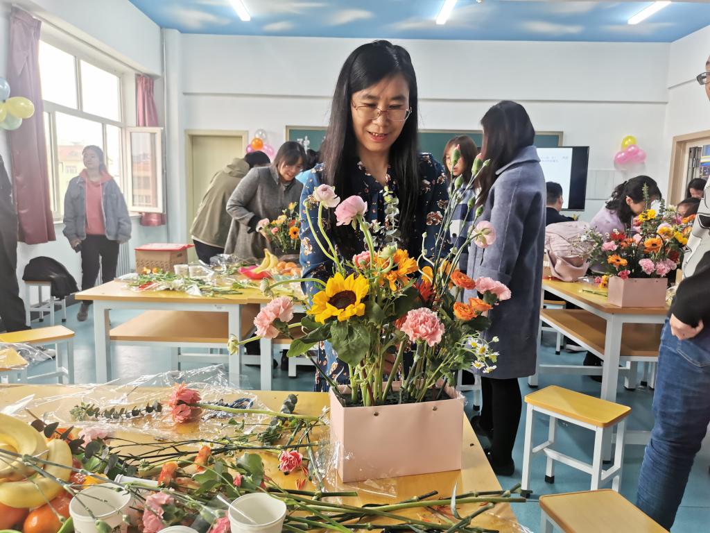 本次活动形式丰富多彩。活动一开始,首先为评为学院“三八”红旗手的四位优秀女教师颁发奖状和奖品。之后是党史知识问答环节,包括必答题和选答题两部分,全体教师分为5个小组参与活动。问答环节中,各组选手争分夺秒地在规定时间内完成所有关于党史知识的问答题目。党史知识问答环节结束后,学院工会特邀请插花老师来指导女教师们学习插花,以此来庆祝“三八”国际劳动妇女节。在插花师的指导下,老师们完成了自己亲手制作的插花作品,花篮中花团锦簇,表达了老师们对中华民族在共产党领导下所取得的辉煌成就和繁华景象的歌颂与赞美。