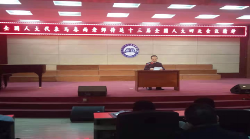 2021年3月18日下午,音乐学院邀请全国人大代表、音乐学院副教授马春雨老师在音乐学院博艺厅,传达十三届全国人大四次会议精神。马春雨老师首先带领大家一起学习了习近平总书记参加内蒙古代表团审议时的重要讲话精神,然后详细介绍了政府工作报告、全国人大常委会工作报告的主要内容,修改后的全国人大组织法和全国人大议事规则、《国民经济和社会发展第十四个五年规划和2035年远景目标纲要》、全国人民代表大会关于完善香港特别行政区选举制度的决定、最高人民法院工作报告和最高人民检察院工作报告等的主要精神。宣讲内容详实具体,事例催人奋进,激发了大家干事创业的信心。