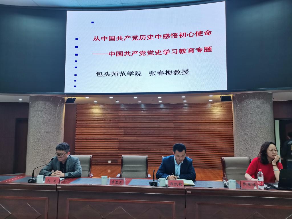 动员会后,由马克思主义学院张春梅教授进行“从党的历史中感悟出新使命”主题讲座。她强调,历史是人生的必修课,作为学生,要学习党史,从党的奋斗史中感悟党的精神,提高自身的党性认识,牢记党的纲领,坚定信仰,做一名社会主义的合格接班人。张春梅教授的讲座让老师及学生们受益匪浅。