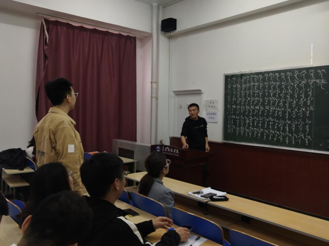 蒙古族同学呼木吉乐为大家教学讲述了蒙古文中的元音和辅音以及简单的蒙语,激发了老师和同学们浓厚的学习兴趣。