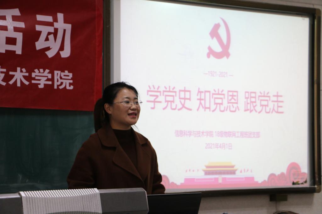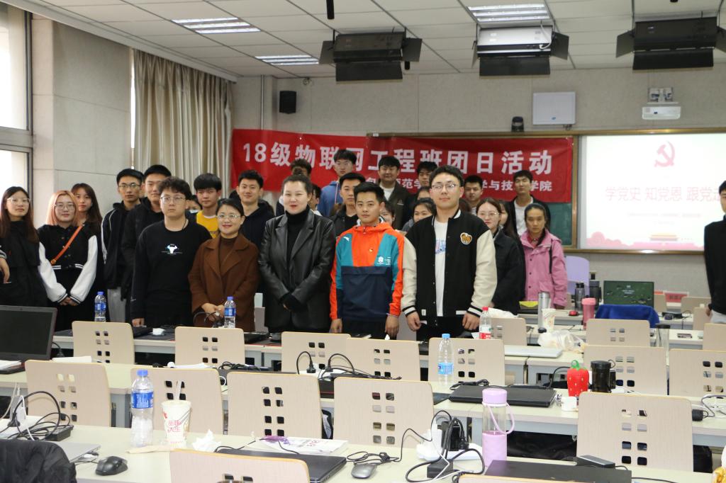 为贯彻落实《关于深入推进2021年全区学校共青团“驻校蹲班”工作》有关要求,信息学院18物联网班团支部于4月1日在博东508开展以“学党史,感党恩,永远跟党走”为主题的团日活动,团委温雪霖、信息学院学工办辅导员姜嘉丽参加本次活动。