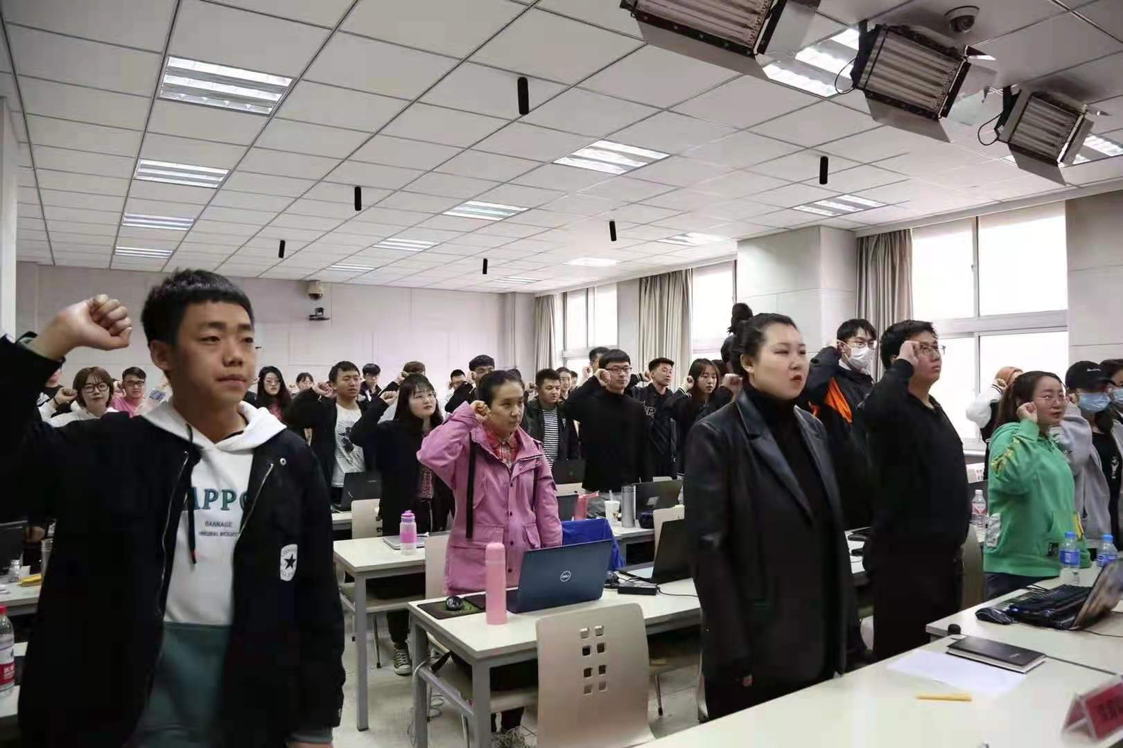活动开始,首先由范崎昊同学分享学习党史的意义,他说“作为年青的一代,认真学习党的历史,对继承和发扬光大革命传统、党的优良作风、提高自己的认识能力和处理实际问题的能力都是十分必要和有益的。”接着由李祥、张伟和孔子茹三位同学为大家介绍“为什么”要学党史、党史应该“怎么学”,他们立志要践行初心使命,一心一意跟党走,做不愚的学党史者,不慌的知史者,不乱的用史者。之后全体同学起立,由范崎昊同学带领大家重温入团誓词、入党誓词。