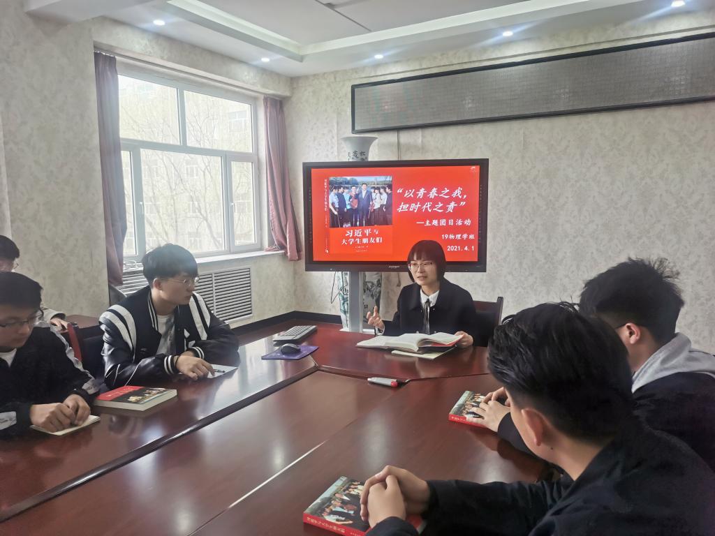为贯彻落实《关于深入推进2021年全区学校共青团“驻校蹲班”工作》有关要求,物理科学与技术学院19级物理学团支部于4月1日上午在新逸夫楼会议室召开主题为“以青春之我,担时代之责”的团日活动。我校团委副书记张锐老师出席了本次活动。