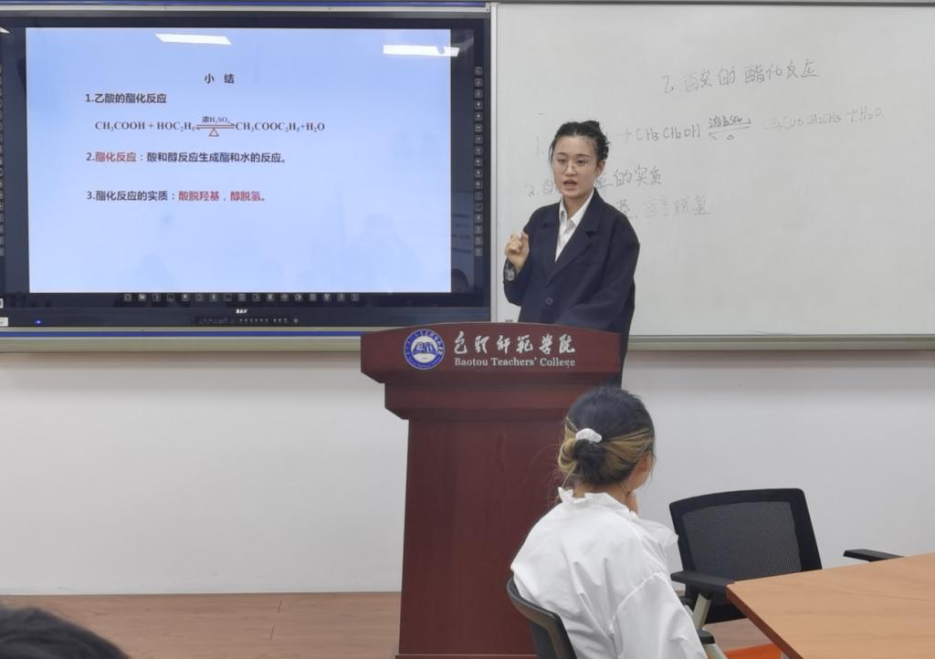 为树立先进的教学理念,培养师范生扎实的教学技能,提升我院师范生的教学能力,同时为校级及内蒙古自治区师范生教学技能大赛选拔优秀选手,化学学院于4月8日在博学楼东106举办了第六届师范生教学技能大赛。化学学院教法研究组教师张玉恒、魏婷、连佩利、张丽娜担任此次比赛的评委。