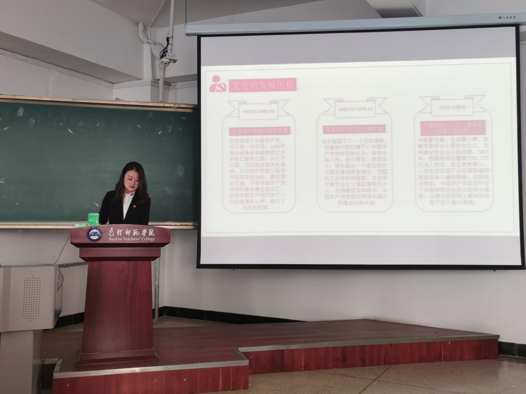 党的征程自建立起便充满了艰难与困苦,学生党员带领同学们回顾了党的百年征程。学生党员就叶挺、赵尚志等先烈的红色故事与同学们进行分享,表达了对先烈的敬意。同学们感慨万分,“吾辈当自强”的责任回荡在每个人的心中。