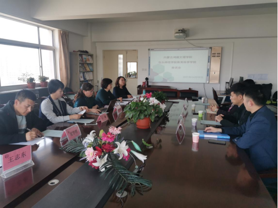 4月9日下午,内蒙古鸿德文理学院副院长刘兴旺一行来到我校教育科学学院调研考察小学教育专业建设工作并进行座谈交流。座谈会由我院副院长刘俊英主持,教育科学学院院长李芳、小学教育专业系主任李秀丽、实践系主任高学明和教师代表出席了座谈会。