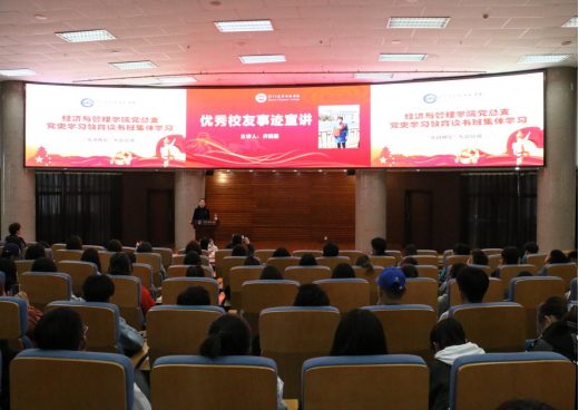 为持续深入推进党史学习教育,引导学生树立正确就业观念,激发学生创业潜力,4月14日下午3时,经济与管理学院党总支特邀我校2008届体育学院优秀毕业生齐晓景为我院学生讲党课。