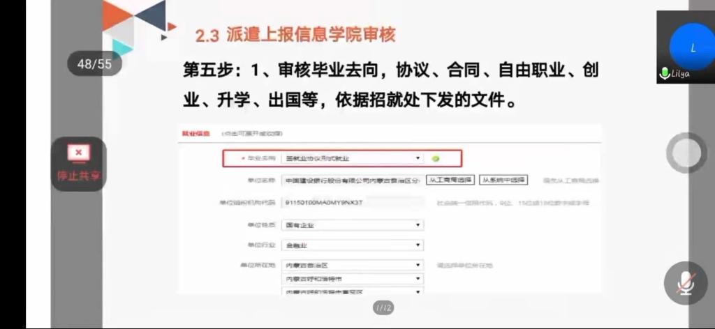 为做好毕业生就业工作,帮助2017级大四毕业生准确有效地确定就业方向和职业发展目标,在思想和行动上早做准备,指导毕业生如何走好从大学走向社会的重要一步。信息学院学工办辅导员姜嘉丽与企业指导教师杨婷婷在4月20日19:30通过腾讯会议开展了一次关于北疆就业系统使用的培训会议。