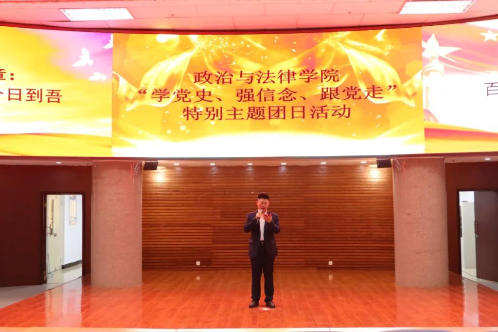 活动最后,郭宏升老师对本次“学党史、强信念、党走”五四特别团日活动做了总结。希望通过举办本次活动可以,进一步激发团员青年的昂扬斗志,进一步坚定团员青年永远跟着党走的理想信念。(政治与法律学院)