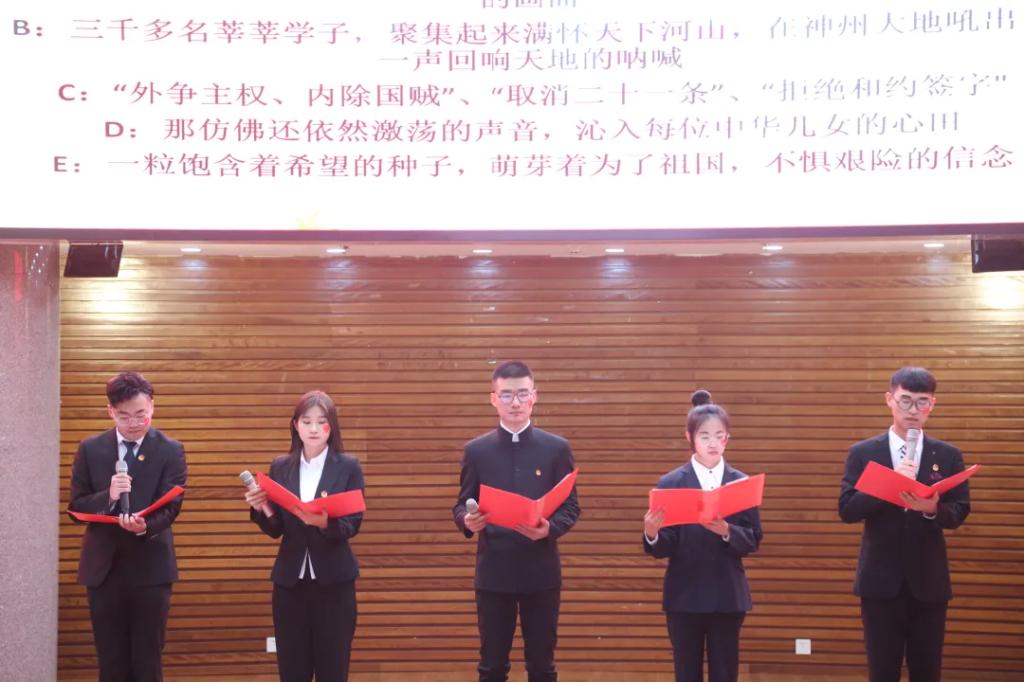 荏苒时光酿造满腔热情,如梭岁月沉淀五四宣言。这是一群热血青年正义的呐喊,这是他们不惧艰险的信念!18行政贾宪婷、18行政胡冰、19行政田园、20社工郝宇彤、20思政安展放同学为大家朗诵《吾辈青年》。