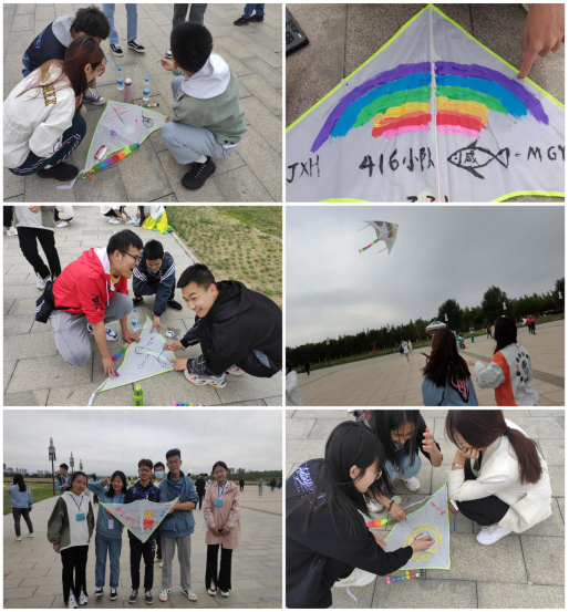 活动第二部分,进行放风筝比赛,同学们三人一组用易班事先为大家准备好的风筝、笔、颜料等工具开始大展身手。同学们大胆想象,尽情地发挥自己的聪明才智,用双手和智慧为自己的风筝增添色彩。制作完成后,同学们兴致勃勃、全神贯注地放着自己绘制的风筝,他们一人拉着风筝线,一人拿着风筝跑,多次尝试后风筝才扶摇直上。东一拉,西一扯,时而高,时而低,天空中飘荡着五彩斑斓的风筝,它们颤颤悠悠,互比高低,都向着蓝天,向着未来展翅飞翔。