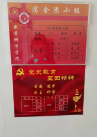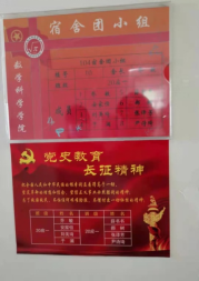 为营造庆祝建党100周年浓厚氛围,让学生根植红色基因、学习党史故事,感知中国共产党“为人民谋幸福、为民族谋复兴、为世界谋大同”的初心和使命,引导广大青年学生争做社会主义的建设者和接班人,近日,数学科学学院开展了“党史知识进宿舍”教育活动。数学科学学院全部宿舍更换门牌标识,在做好党的伟大精神宣传教育的同时,党员学生亮明身份,积极践行“我是党员我帮你”志愿活动。