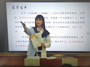 2018级支教学生王君授课的年级为高二年级,在上课之前充分了解了班级的学情,对于学生的学习能力以及学习内容有了深入了解。她给两位老师展示的是《中国古代史诗歌散文欣赏》中古代散文的专题第四单元“创造形象,诗文有别”中的散文——《庖丁解牛》。