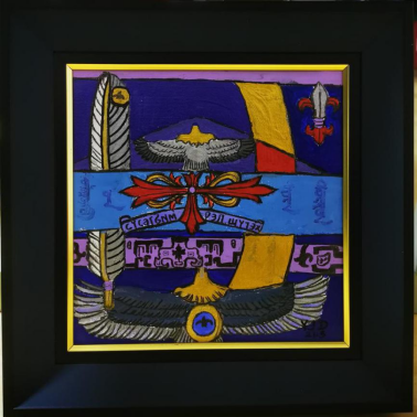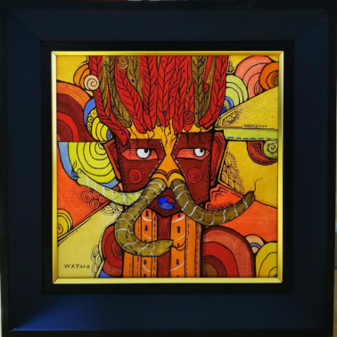 2、与艺术家郭其鹏、王红川彩塑作品“山神”合影