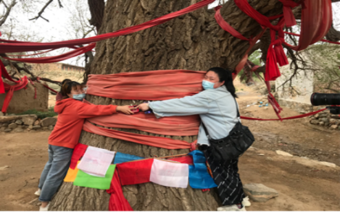 7、东达沟旧村口的老榆树被视为神树,三人难以合抱