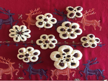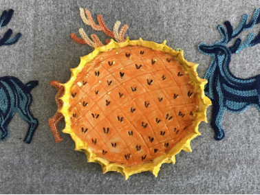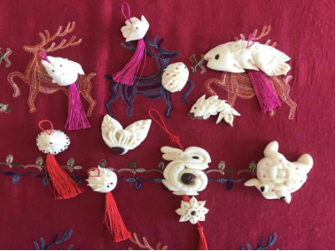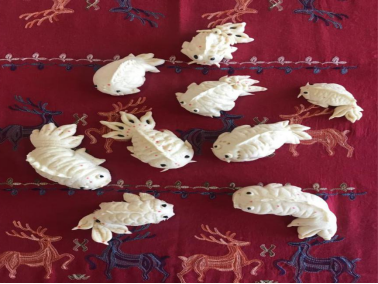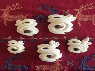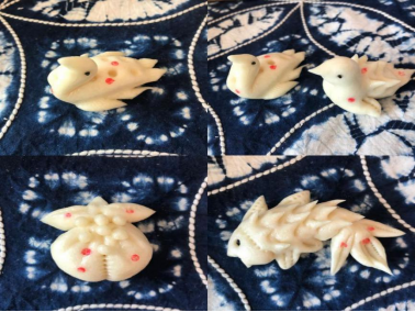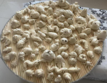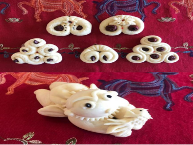 5、给蒸熟的面塑进行点彩装饰