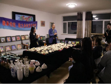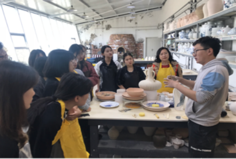 1、陶艺传承人卢雪老师给学生讲解陶艺知识