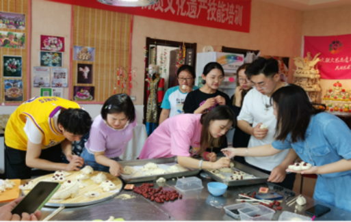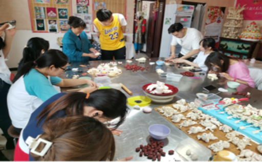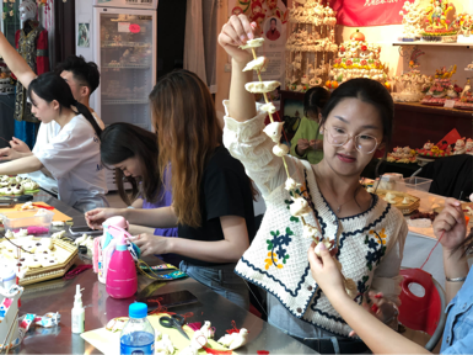 3、面塑传承人邢茹老师给学生示范面塑技法