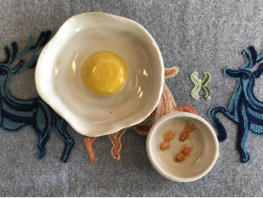 4、学生的面塑“寒燕燕”蒸熟出锅了