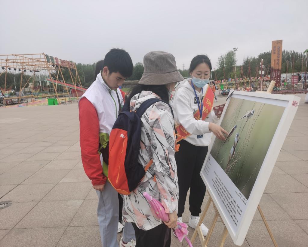 本次科普宣传活动以制作宣传展板、发放倡议书及资料等形式宣传“爱鸟护鸟,万物和谐”的主题。在此次活动中,我院师生在现场为参与此次活动的家长和孩子们讲解有关包头南海子湿地鸟类的基本知识,普及野生动物保护法等相关法律法规,增强保护野生动物、保护鸟类和野生动物栖息地的意识,倡导广大市民以实际行动,保护好野生动物栖息地。