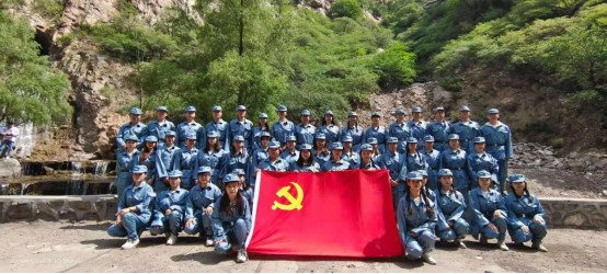 在行车前往九峰山途中,全体师生唱有关于中国共产党的歌曲,到达大青山革命根据地后全体成员换上八路军服装,切身体会八路军精神。在八路军大青山支部司令队了解前辈留下的足迹,跟着前辈的足迹前行,学习他们的红色精神,感受他们的磅礴力量;最后党员同志们高举右手重温入党誓词,牢记初心使命。