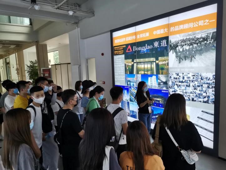 接待负责人向我们介绍了东道集团比较突出的代表性设计案例。同学们听的十分认真。参观完后,大家积极互动,负责人详细解答同学们所提出的各种专业问题。最后,负责人还热情邀请同学们有机会可以到东道实习,锻炼、提升自己的设计素养与专业水平。