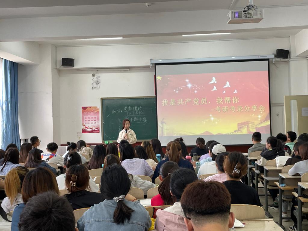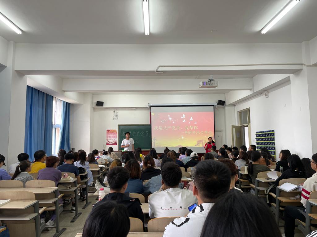 5月27日数学科学学院开展了“我是共产党员,我帮你”主题系列活动之优秀党员考研考录经验分享会,旨在通过2017级毕业生党员的考研、考录经验分享,帮助大三同学梳理学习内容、提高学习效率、调整就业预期。出席活动的嘉宾有数学科学学院学生第二党支部书记郭亚楠老师,2017级参加过考研、考录考试的优秀毕业生党员。