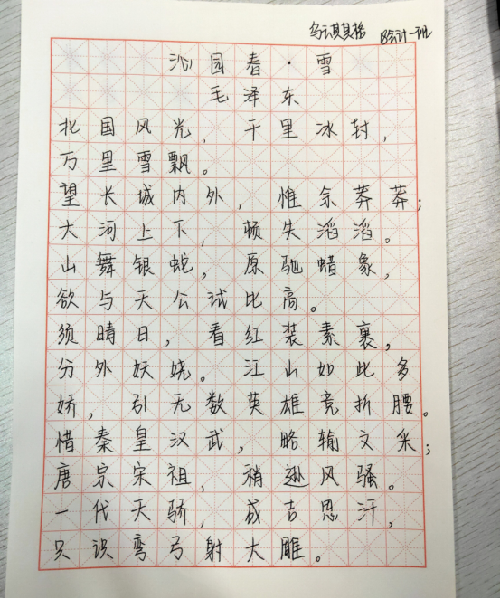 活动在书写毛泽东主席的《沁园春·雪》中落下帷幕,在书写环节,同学们体会到如今的幸福生活离不开各民族前辈的英勇献身,不由得感叹国家通用语言文字的博大精深。同学们纷纷表示今后要不断提高使用国家通用语言文字能力,从而促进自身综合能力的提升。师生深感各民族一定要像石榴子一样紧紧拥抱在一起,为中华民族伟大复兴而努力奋斗。(经济与管理学院)