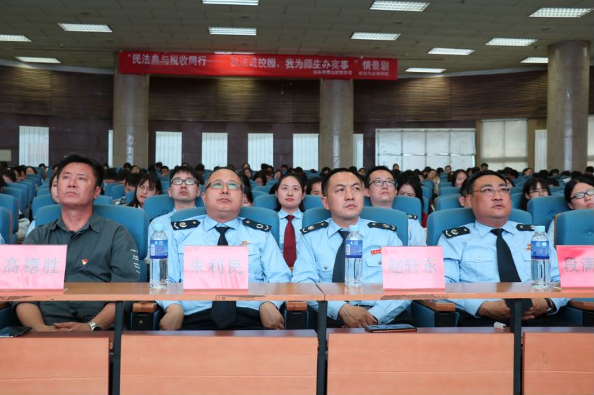 包头市青山区税务局联合包头师范学院政治与法律学院于5月26日博学楼二楼学术报告厅举行民法典与税收同行——“税法进校园,我为师生办实事”普法情景剧活动,出席本次活动的领导有国家税务总局包头市青山区税务局党委书记、局长朱利民、国家税务总局包头市青山区税务局党委委员、纪检组长李仲义、国家税务总局包头市青山区税务局党委委员段满红、国家税务总局包头市青山区税务局、财务股副股长吕品以及我校政治与法律学院党总支书记高德胜、学院学工办主任、团总支书记袁爱荣以及2018到2020级全体同学。