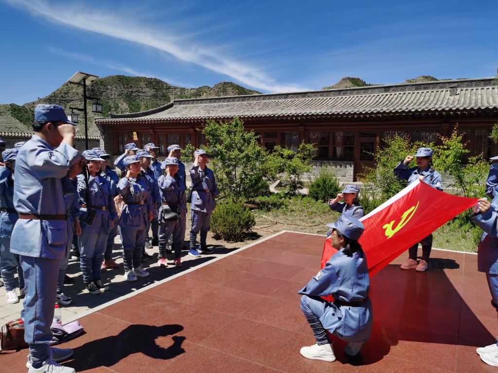 此次主题党日活动分为党性教育、现场教学、参观学习、体验互动等环节。集体乘车到达土右旗红培中心后全体教师换上八路军服装,随后驱车前往八路军大青山支队司令部纪念馆,举行了开班仪式,全体教师齐唱国歌,两个学院全体党员在教育科学学院党总支书记张岫峰的带领下面向党旗重温了入党誓词;党员及教师们随同讲解员参观了纪念馆内的革命历史陈列展,聆听了讲解教员关于革命前辈奋斗历程和英雄故事的教学讲解,使全体教师了解了革命先辈当年的红色足迹。在培训中心教员的引领下,在八路军大青山支队司令部纪念馆所在的九峰山管委会巴总尧村,组织全体老师们进行了重走抗战路线、抢占制高点、投掷手榴弹、警钟长鸣等体验活动,使老师们切身体会到了抗日战争时期斗争的艰难,,感受到了革命先烈大无畏的革命精神。