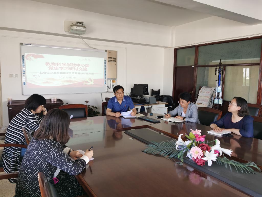 6月2日上午,教育科学学院中心组成员深入学习“社会主义革命和建设及改革开放时期”专题研讨交流会在博学楼731举行。会议由教育科学学院党总支书记张岫峰主持,副书记李燕,副院长刘俊英参加会议并进行了发言交流。