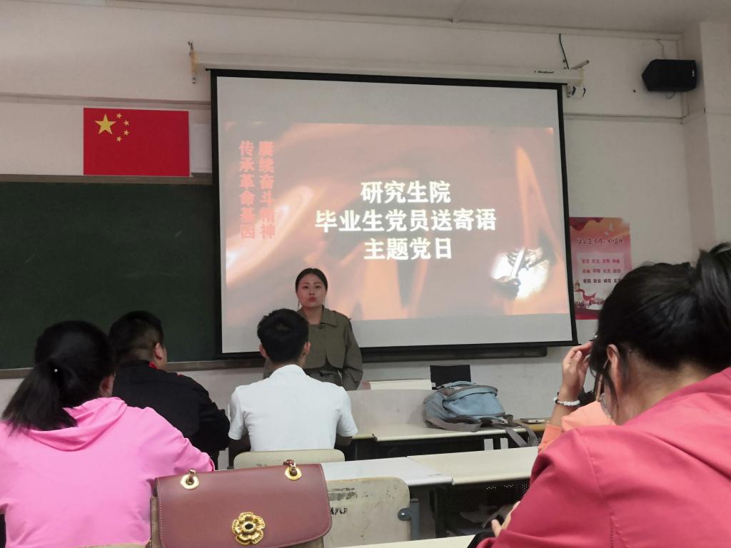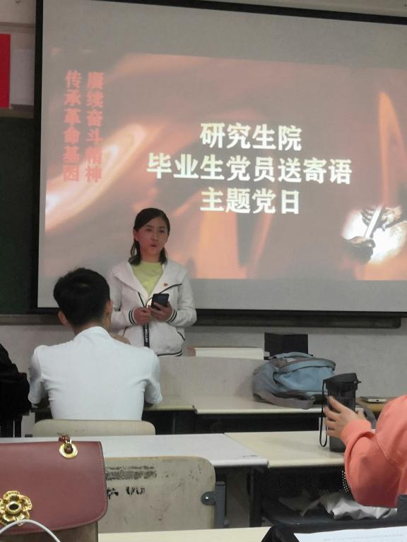 在中国共产党建党100周年之际,迎来毕业季,为激励在校研究生传承优秀精神、砥砺奋进,研究生党支部于2021年6月3日下午14:30在逸夫教学楼408组织了“传承革命基因 赓续奋斗精神”--毕业生党员送寄语主题党日活动,全体党员、入党积极分子参加了活动。
