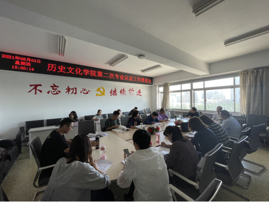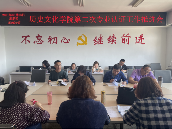 2021年6月3日下午,历史文化学院院长郝建平主持召开了本学期历史学专业认证第二次推进工作会,历史学专业认证自评报告撰写成员参加了本次会议。