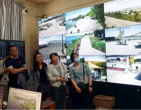 在管理处科研监测中心,通过监控镜头,大家了解湿地的生态环境和珍稀鸟类及其栖息地的情况。刘利博士就研发黄河湿地鸟类人工智能识别、监测系统开展交流。
