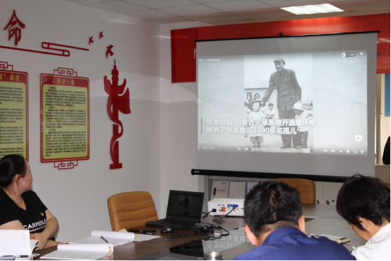 观看结束后,党支部书记张为带大家再次回顾了习近平总书记在参加十三届全国人大四次会议内蒙古代表团审议时,提到了“三千孤儿入内蒙”的历史佳话。自然灾害困难时期,内蒙古的牧民群众奉献爱与担当,抚养“国家的孩子”,生动诠释了中华民族大家庭中各族同胞手足相亲、守望相助。这些“国家的孩子”长大后,走上各行各业,为内蒙古自治区和国家建设贡献着自己的力量,他们许党报国,终身以草原为荣、心系草原、反哺草原。3000孤儿与内蒙古大草原之间,原本相隔千里,没有血缘关系,如今却骨肉相连、生死相依,演绎了一段超越地域、血缘、民族的历史佳话!