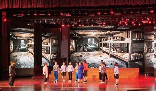 《秋风荡尽》中荡不尽的是家国情怀;《一二九运动》中展现的是无畏与舍生;《赵一曼》中展现的是舍小家、为大家的奉献;《长生旅店》中展现的是全国人民共同抗外的团结;《绣红旗》中展现的是对新中国的期待与大爱;《小岗村》则诠释了党员干部扶贫的责任担当。峥嵘岁月恰百年芳华再现,所有的呐喊与泪水都是永恒祭奠。舞台上铺开波澜壮阔的历史画卷,观众在追忆革命先辈光辉战斗的足迹中,感悟中国共产党不同时期的初心和使命。