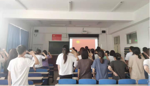 首先,由团支部书记赵旭同学以播放文献纪录片的形式回顾了中国共产党历经百年的艰苦卓绝、波澜壮阔的光辉岁月,接着,曹浩然、宋艳霞、丁圣伟、苏学伟、马宇飞同学带着饱满的热情为大家讲述了李大钊等革命先烈的感人事迹;郭鑫宇、吴闯、李意雪同学合唱了“没有共产党就没有新中国”;随后,大家共同参与了党史知识竞赛并重温了入团誓词。铿锵的誓言、庄严的承诺、激昂的歌声,表达着广大青年对中国共产党浓浓的热爱之情,同学们纷纷表示:“将笃实力行、不负韶华,践行青春使命,争做栋梁之材。”