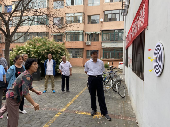 6月24日下午,老同志们来到离退休人员工作处参加掷飞镖比赛,尽管天气阴沉,但老同志们参赛热情不减,薛红旗处长做起了大家的“飞镖指导”,比赛现场欢声笑语不断。
