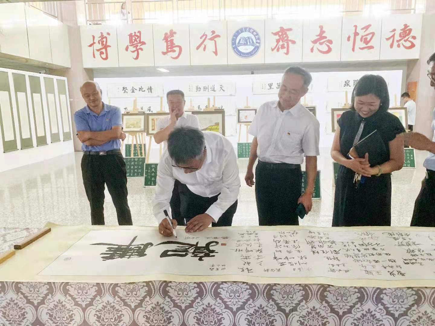 6月29日下午,校领导集体参观了本次汇报展,对展品培养给予了高度评价,校领导还在纪念卷轴上签名以资鼓励 (教育科学学院)