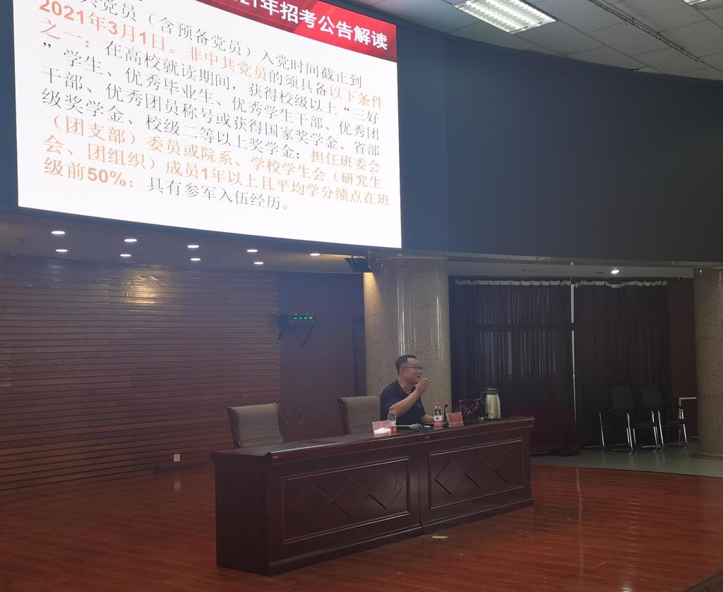 为了加强我院学生对公考的了解,拉伸备考水平,提升考试能力,让学生不出校门也能了解公考报名流程、考试重点、趋势分析等相关信息,帮助学生提升公考素质,切实帮助我院学生成长成才,助力稳就业工作,2021年7月1日,政法学院邀请曹志涛老师给同学们上了一堂《公务员其实挺简单》为主题的公考培训辅导专题讲座。政法学院大三全体同学和其他二级学院部分大四同学参加了讲座。