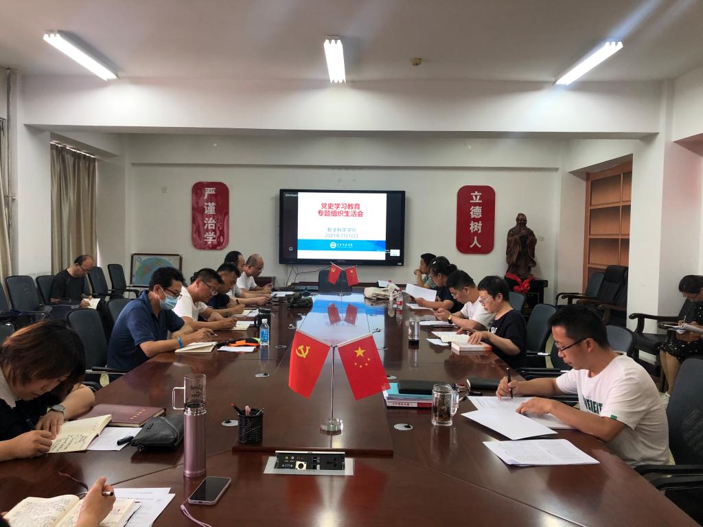7月12日下午,数学科学学院教工党支部在718会议室召开党史学习教育专题组织生活会。会议由数学科学学院党总支书记朱丽主持。