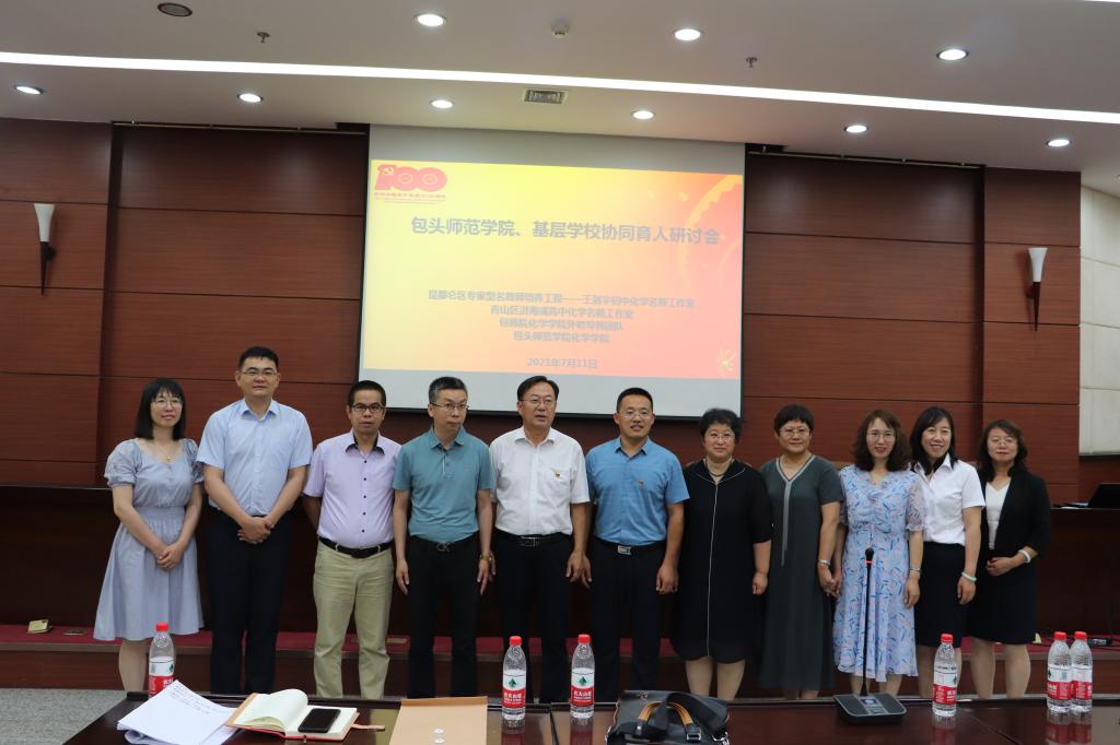 为了推动师范院校与基础教育有效结合,促进人才培养合理化、职前职后一体化、基层教师专业化、协同育人常态化,化学学院于7月11日上午举办了包头师范学院、基层学校协同育人暨2019版师范专业人才培养方案修缮研讨会。出席本次会议的有化学学院书记李建军、副院长张骁勇、化学系系主任马学林、王剑宇初中化学名师工作室及洪海彧高中化学名师工作室的教师和化学学院外聘导师团队以及化学学院师生代表。